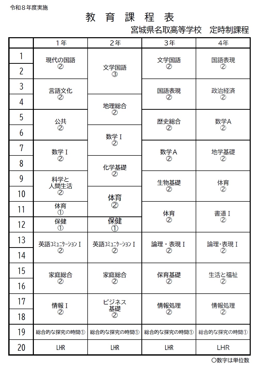 宮城県名取高等学校 定時制課程〒989-2474宮城県岩沼市字朝日50TEL : 0223-22-3151FAX : 0223-22-3152